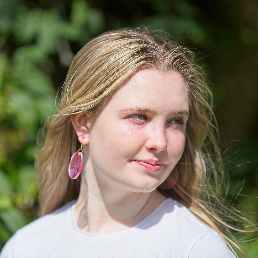 Jeg støber alle mine øreringe i epoxy og tilsætter farver og glimmer så de er alle sammen unikke. Stikker og kroge køber jeg hos smyks, så jeg er sikker på. det er rigtigt sølv/guldpletteret sølv og allergifrit.